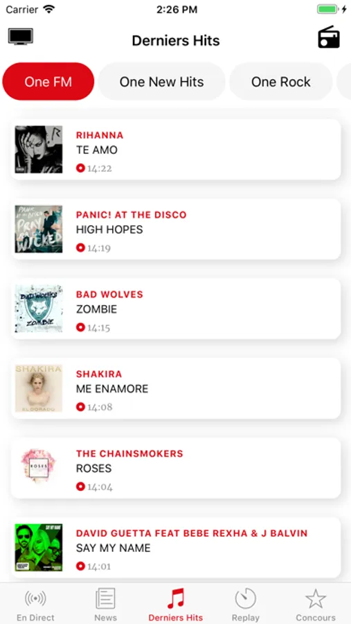 - Retrouvez la liste des derniers titres diffusés sur la radio One FM et sur ses webradios.