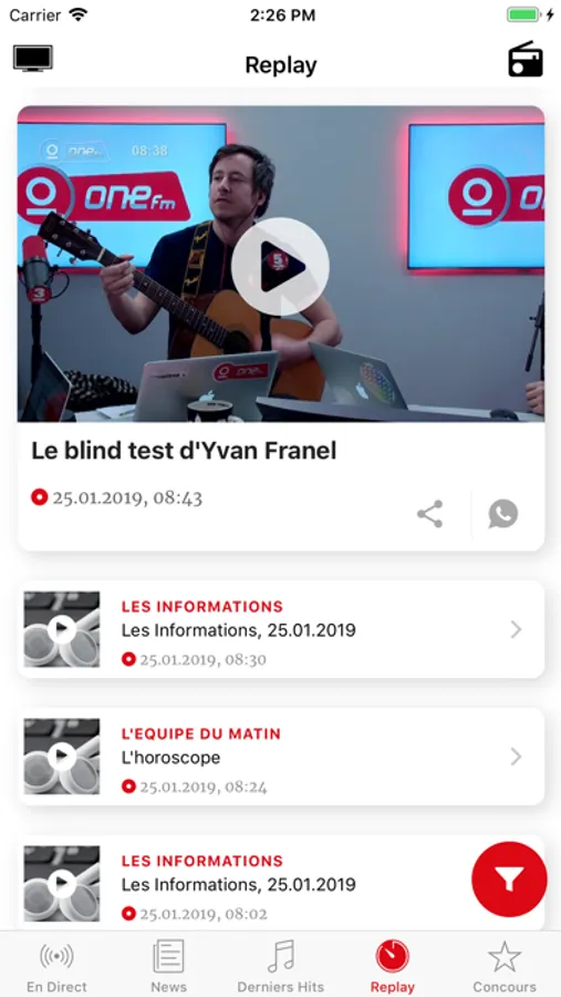 - Réécoutez vos chroniques favorites de One FM grâce à la fonction replay.