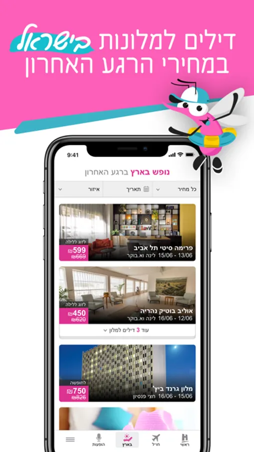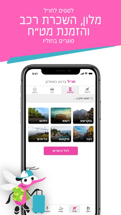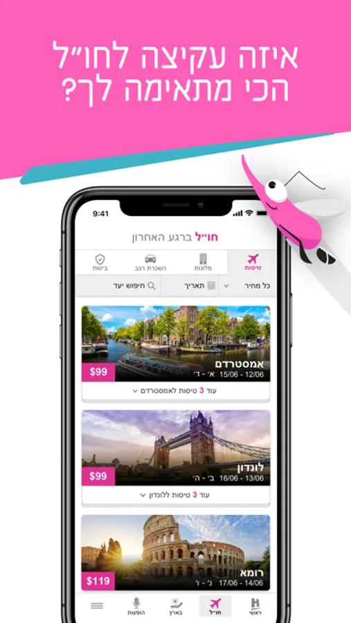 חוליו מרכזת עבורכם באפליקציה אחת טיסות זולות לחו"ל, הופעות ומלונות בארץ, והכול במחירים משתלמים במיוחד!