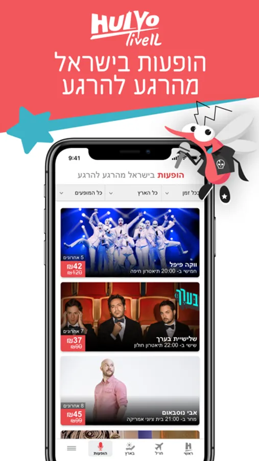 כרטיסים להופעות והצגות בארץ: מתחם HULYO live IL הופעות ברגע האחרון בישראל