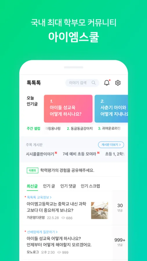 650만 이상 학부모가 선택한 자녀 교육정보 커뮤니티 필수 앱, 아이엠스쿨!