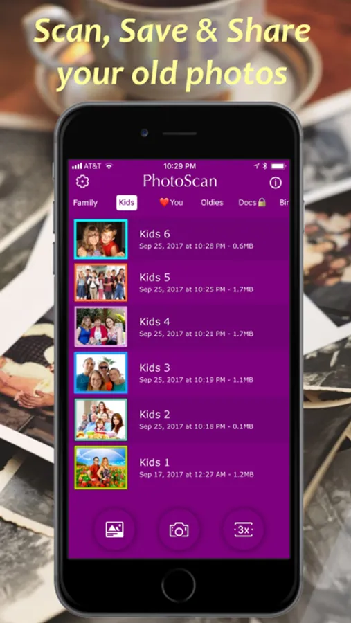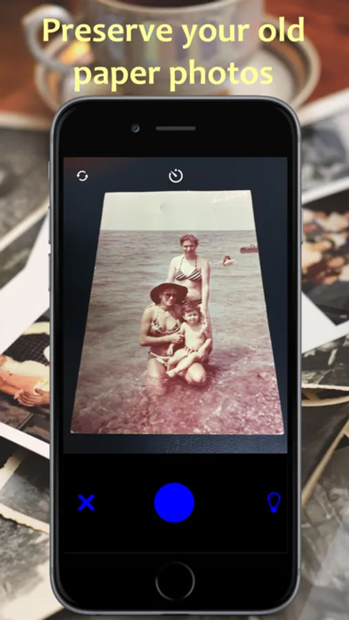 • Continuous light (instead of flash) to avoid photo glare while scanning your paper photo