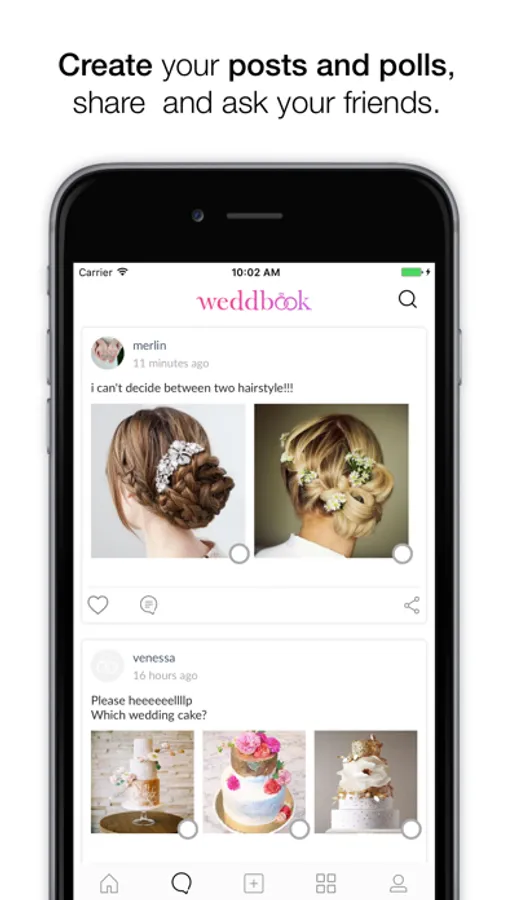You can create and share poll in matters that you are indecisive to get ideas. Like and save your favorite items on your profile , share your own ideas. Create text or image polls and share them.