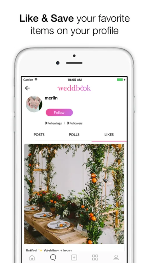 * Follow other soon to be brides and vendors you like and get notified when they upload a new idea