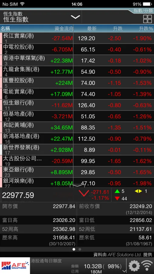 - Comprehensive self-monitoring system for about 90 Constituent Stocks of Hang Seng Index, China Enterprise Index & China-Aff Corp Index.