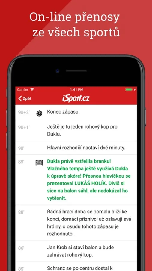 Aplikace navíc nabízí také pohodlný přístup k textovým on-line přenosům z klíčových utkání a sama vás upozorní nejen na začátek zápasu, ale také na klíčové momenty, jako jsou góly nebo červené karty. Upozorňování na on-line přenosy si můžete kdykoliv zapnout a vypnout v sekci Live přenosy.