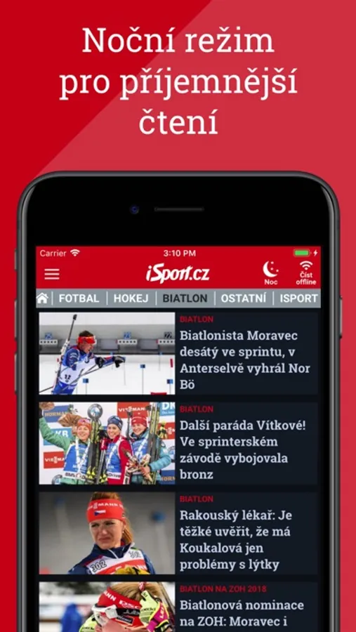 Sportovní zprávy, aktuální výsledky, online přenosy i sestřihy z odehraných utkání vám nabízí aplikace iSport. V přehledném a aktraktivním prosředí aplikace snadno získáte přehled o nejdůležitějších událostech a dění na tuzemské i zahraniční sportovní scéně. Na jednom místě najdete aktuality ze všech sportů (fotbal, hokej, tenis, biatlon..) včetně fotogalerie a videí.