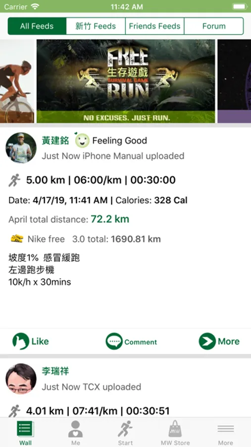 - Personal information including running experience, total distance, cycling distance, month goal.