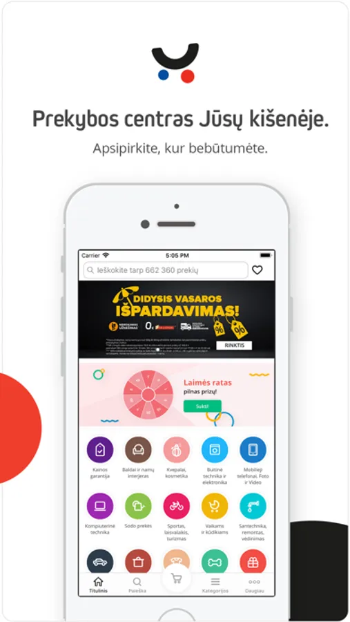 Naudokitės patogia paieška, filtruokite ir suraskite sau tinkamiausias prekes vos keletu piršto prisilietimų.