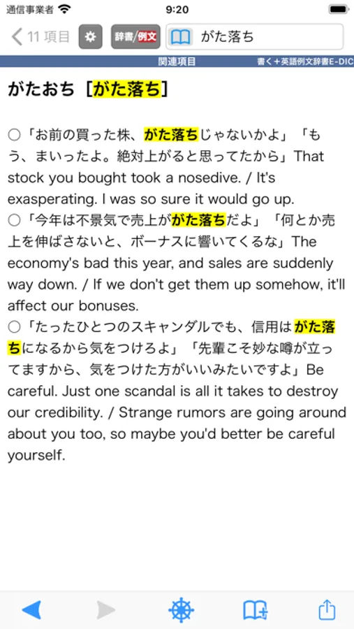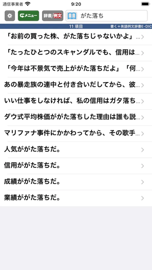 1.辞書検索と例文検索の切替で目的情報に即たどり着く