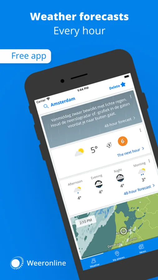 Maintaining an app for 1.3 million people is hard work! It’s being worked on by a team of developers, designers and meteorologists. Of course this costs money and that’s why we can only offer the app for free with advertisements. Would you rather use the app without ads? With a Weeronline Plus subscription all ads are removed and you can also hide and move all tiles on your start screen.