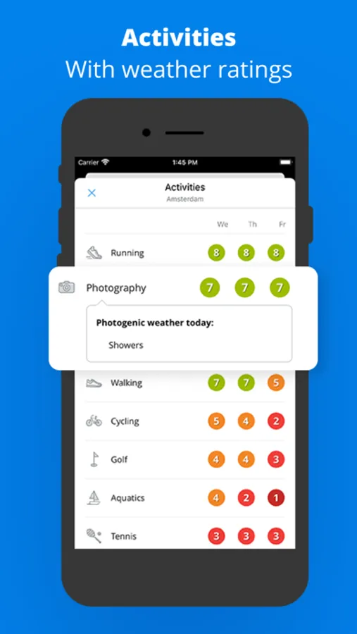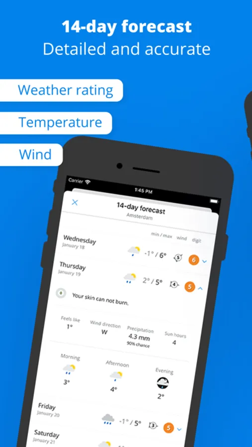 Should I wear sunglasses? Can I go for a run? Can we have a barbecue tonight? The app will answer these questions for you. This way you can make the most out of the weather.