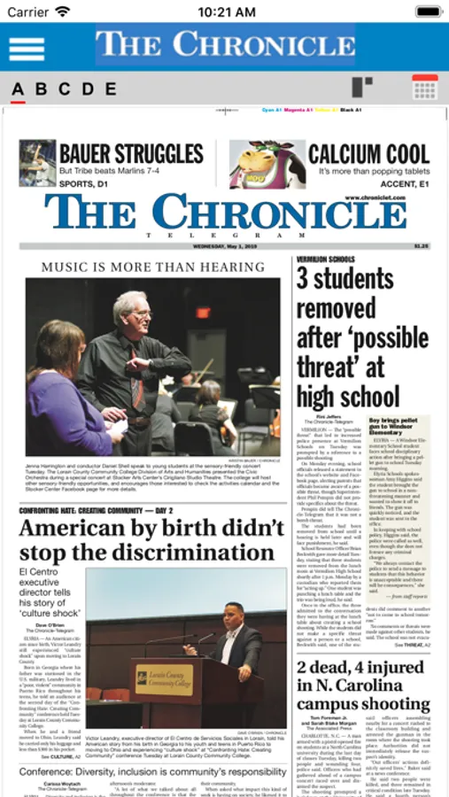 Our new mobile app gives users a complete news experience on-the-go, produced by an award-winning news staff. Choose "Live News" to get alerts on breaking local and national topics and read community news, sports and feature reporting enhanced with vivid photos and photos and videos from www.chroniclet.com. Choose "E-Edition" to page through our daily Chronicle-Telegram digital replica and special editions for a newspaper feel with technological perk including a crystal-clear view of every word, coupon and advertisement available with streamlined navigation, social sharing and an audio reader. We are proud to be Lorain County's most trusted and top local news source.