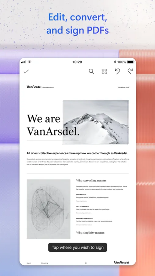 • Edit PDF files on your device quickly and easily while on the go.