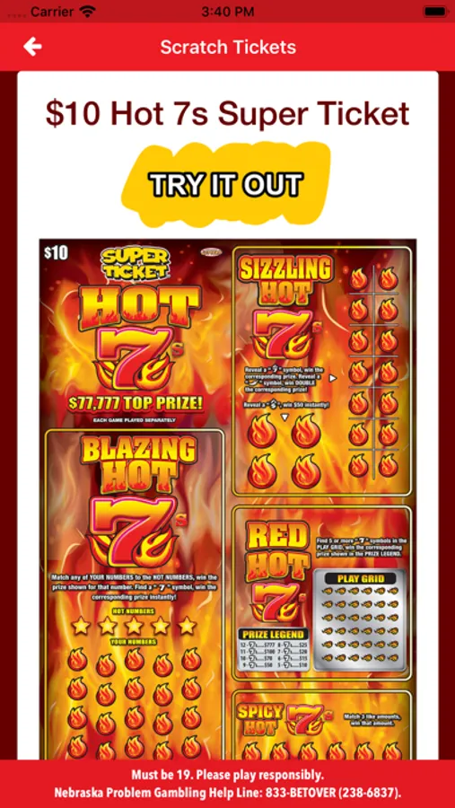 The official app of the Nebraska Lottery featuring: