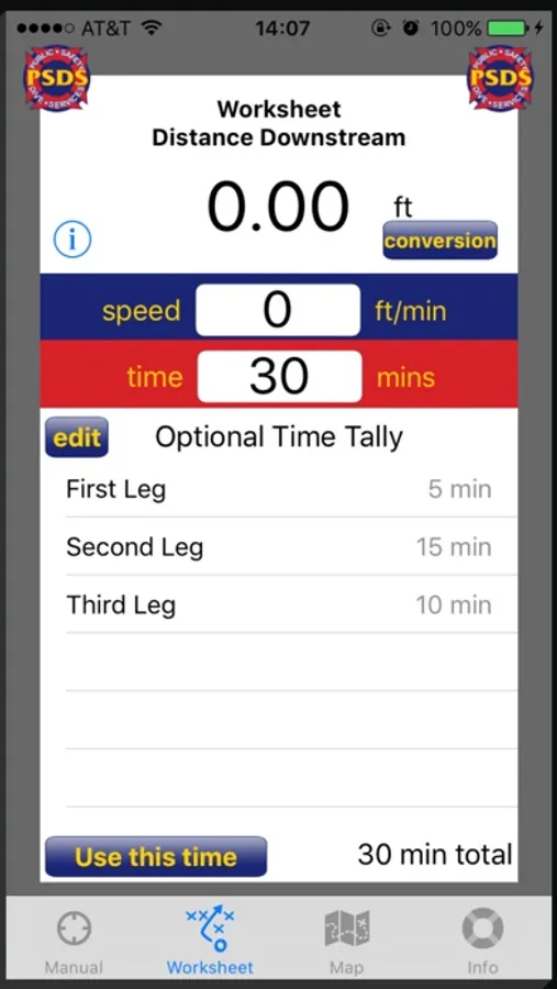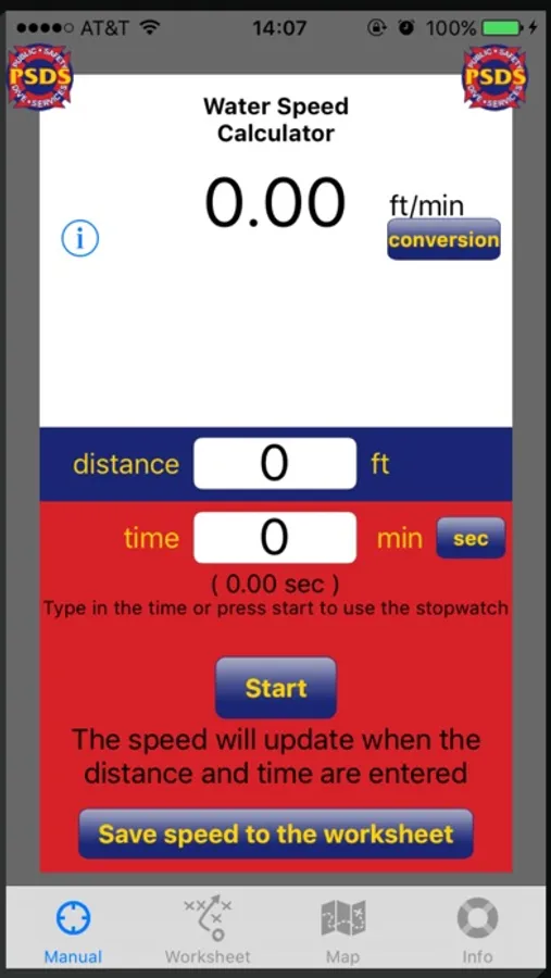 The PSDS Swiftwater Estimator app is designed as an educational tool designed to determine surface speed of moving water.