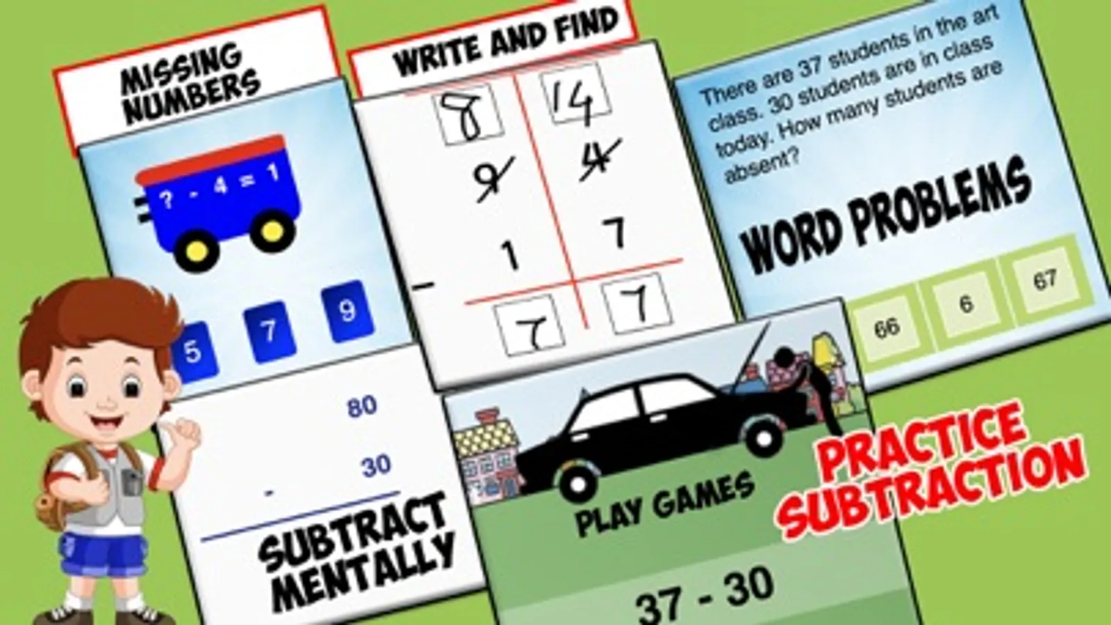 Subtraction Facts, Regrouping, Fast Subtractions, Word Problems.