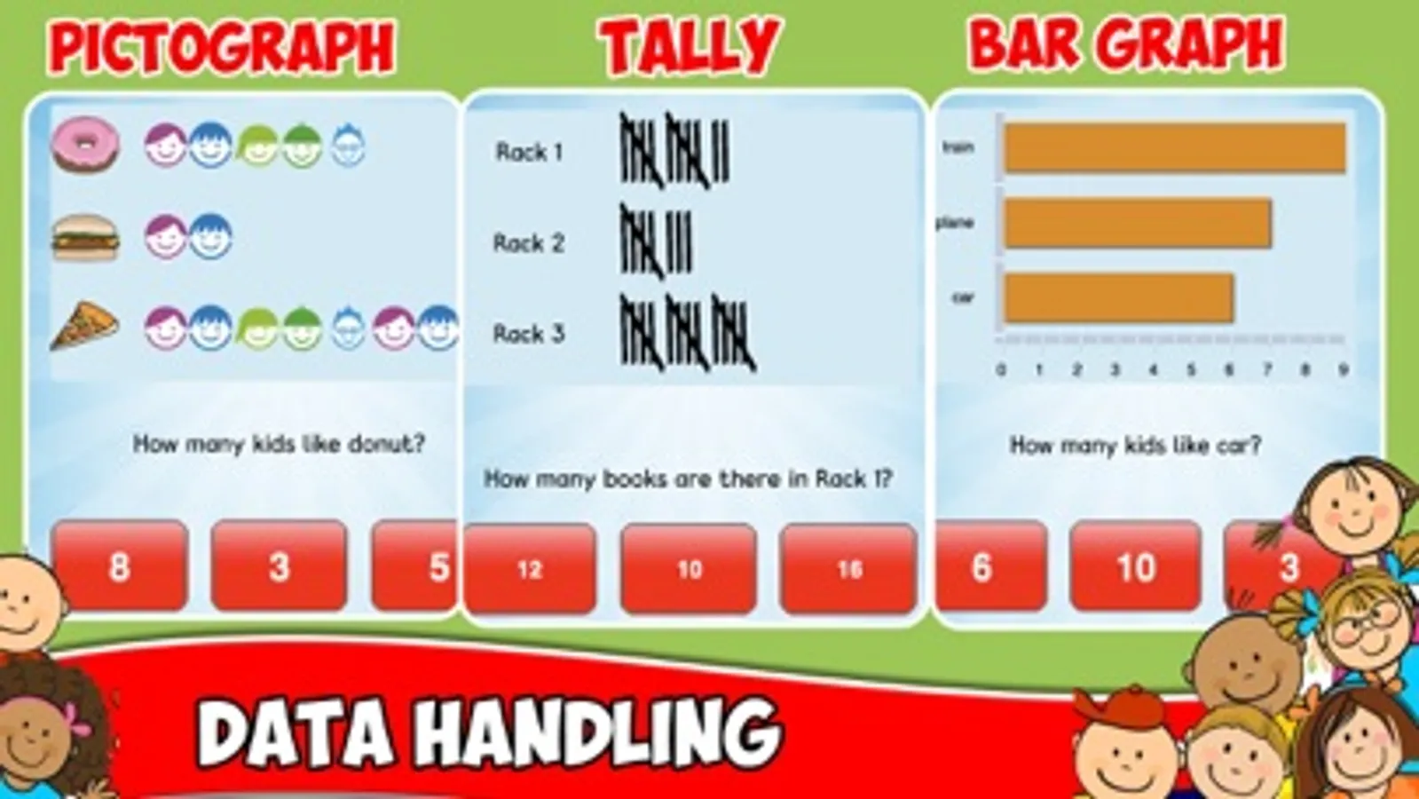 Shapes, Pictograph, Bar Graph, Tally Marking, Measurement, Patterns.