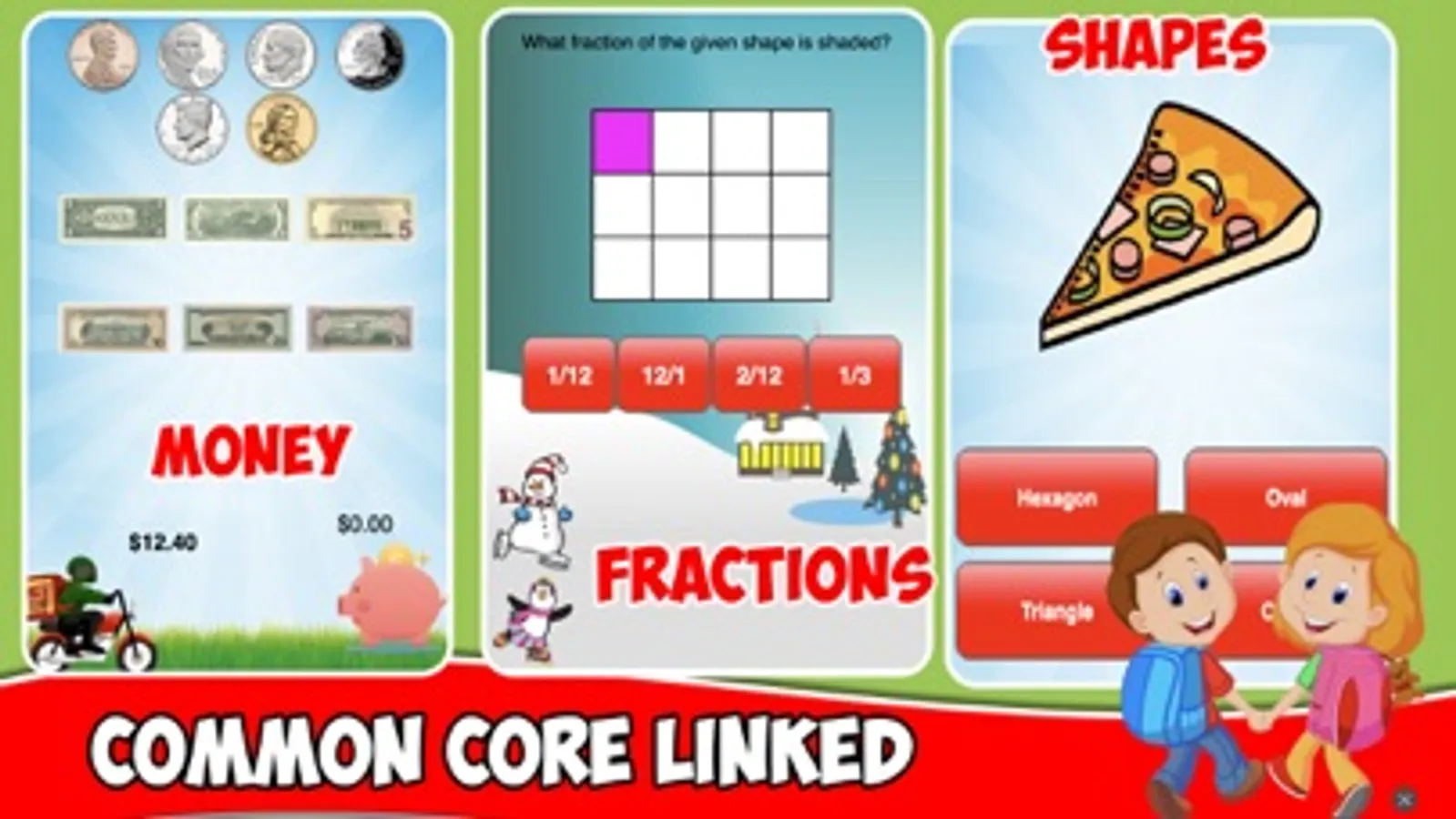 Calendar, Telling Time, Time Word Problems, Fractions, Money.