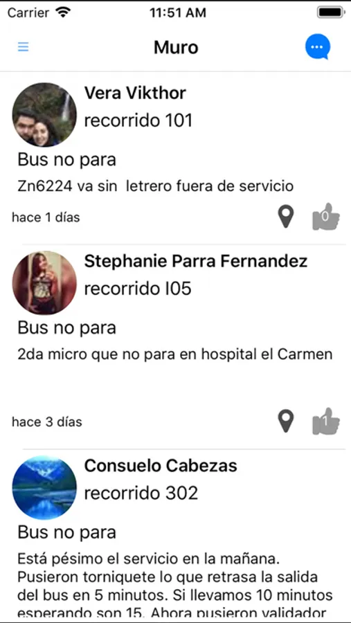 - Envía mensajes a otros usuarios para advertirles de problemas en los recorridos o paraderos.