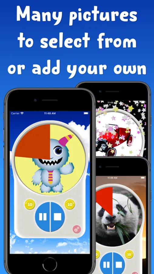 A fun picture is slowly revealed as the time runs down and when the time is up the child is rewarded with an exciting sound and the picture spins.