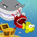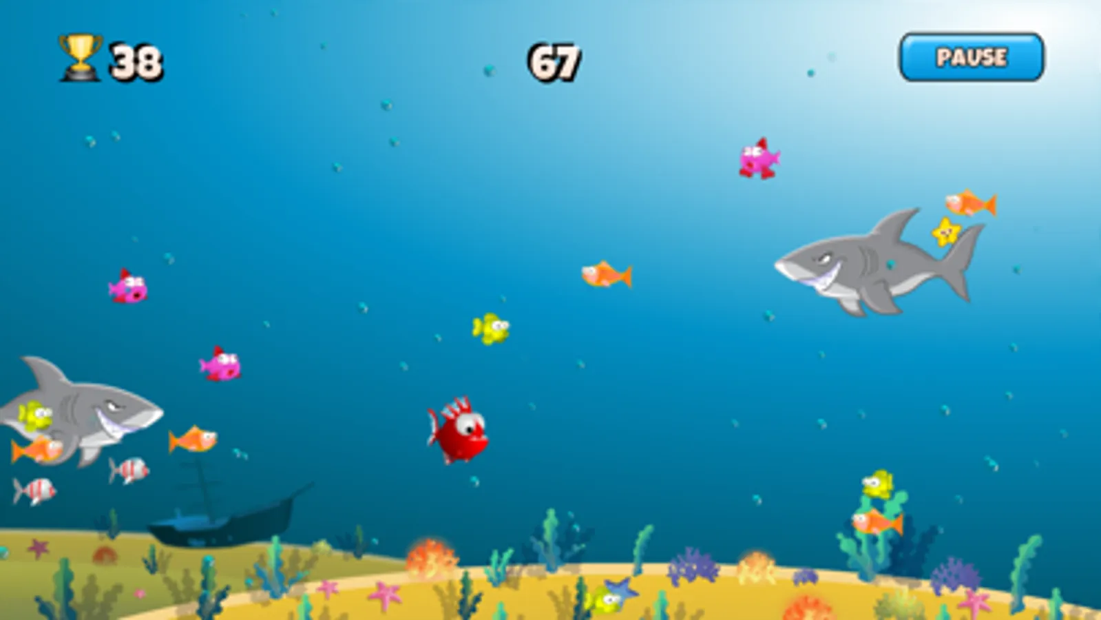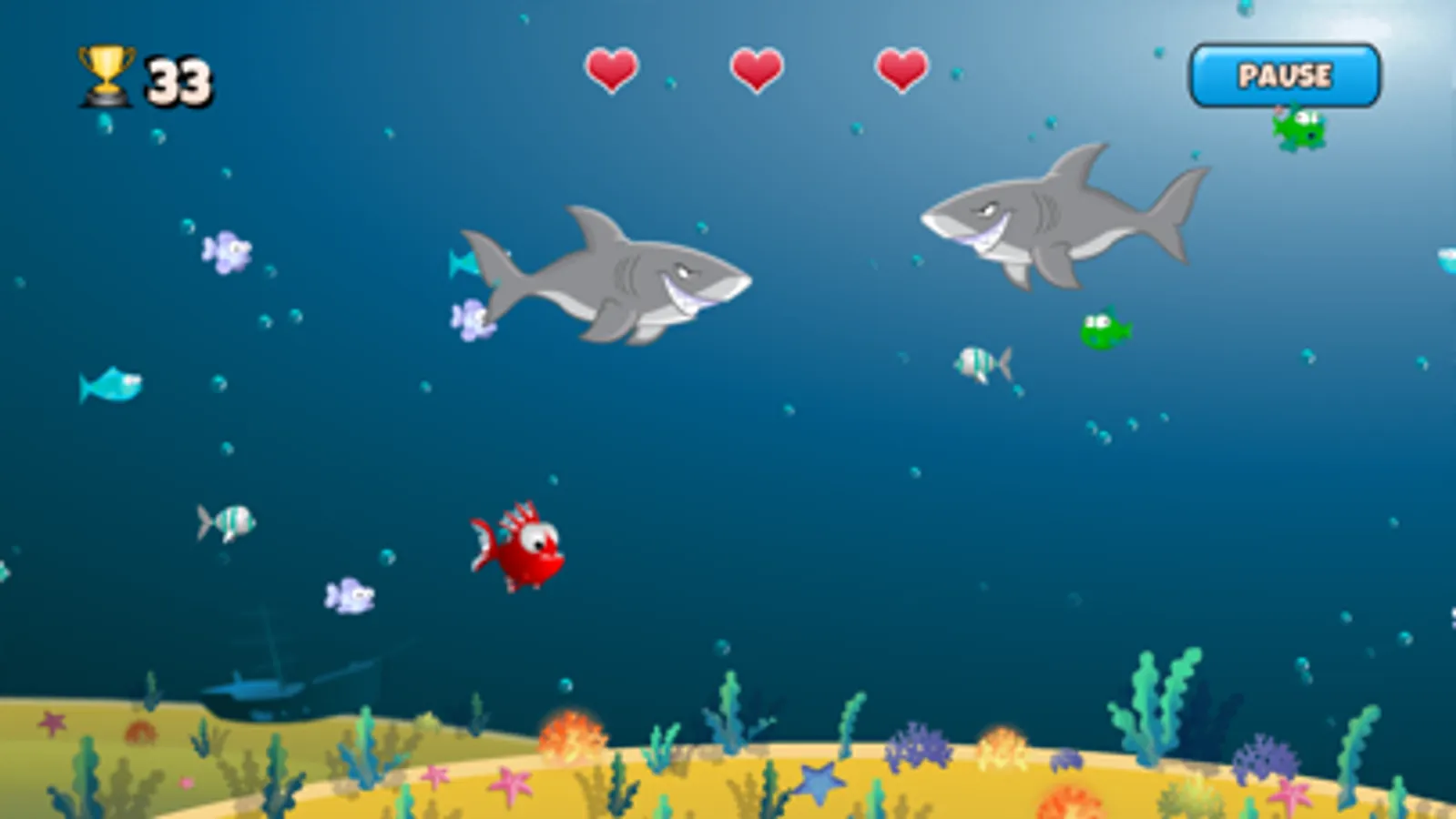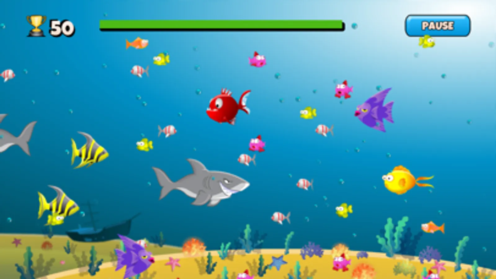 Alfie can grow and eat bigger fish but watch out for the sharks!