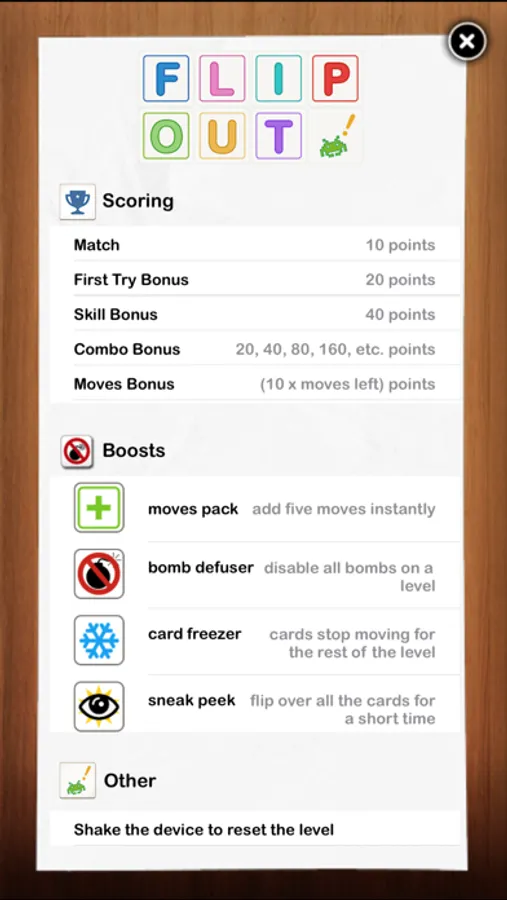 Flipout! is a game of skill and luck that challenges your memory. Flip over two cards and try to get a match! You get a bonus if you succeed on your first try and for making multiple matches in a row.