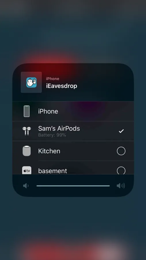 The iEavesdrop app redirects internal microphone, external wired microphone or line input input audio to any Bluetooth audio device such as AirPods so that you can use your phone as a stealth listening device.