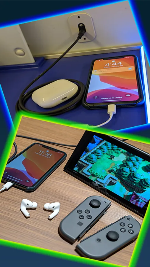 Using the correct line input cables, audio from any device such as an external microphone, in-flight entertainment or portable gaming device can be routed to your AirPods or other Bluetooth device.