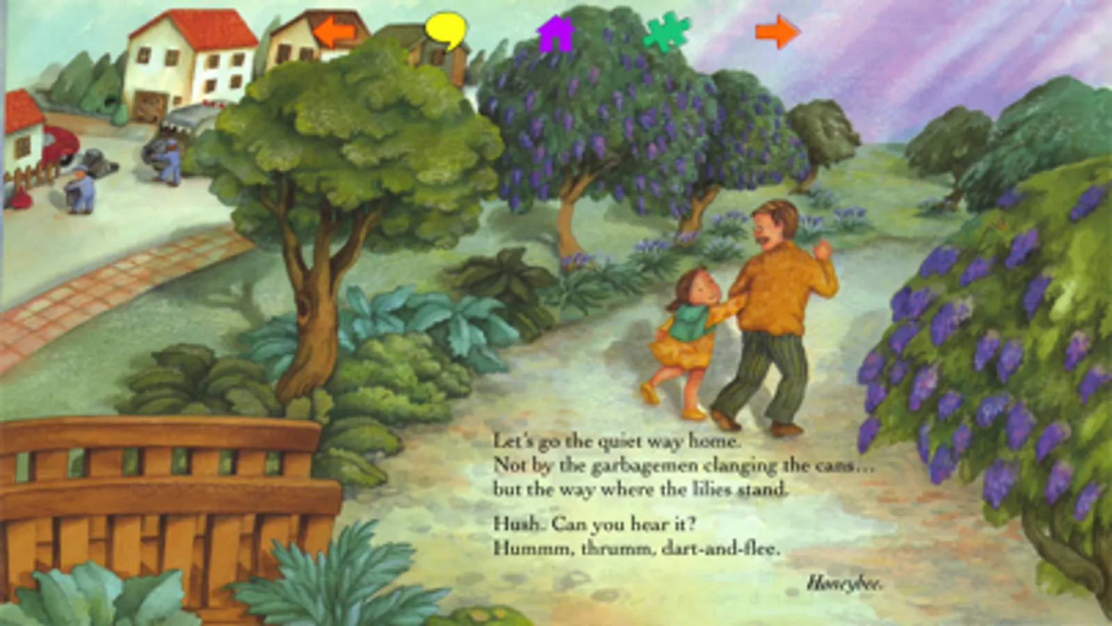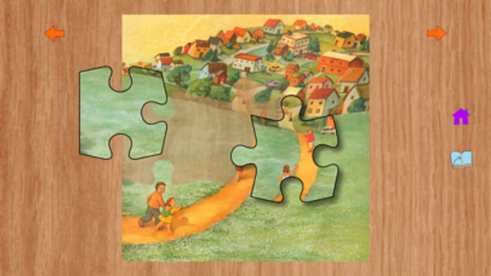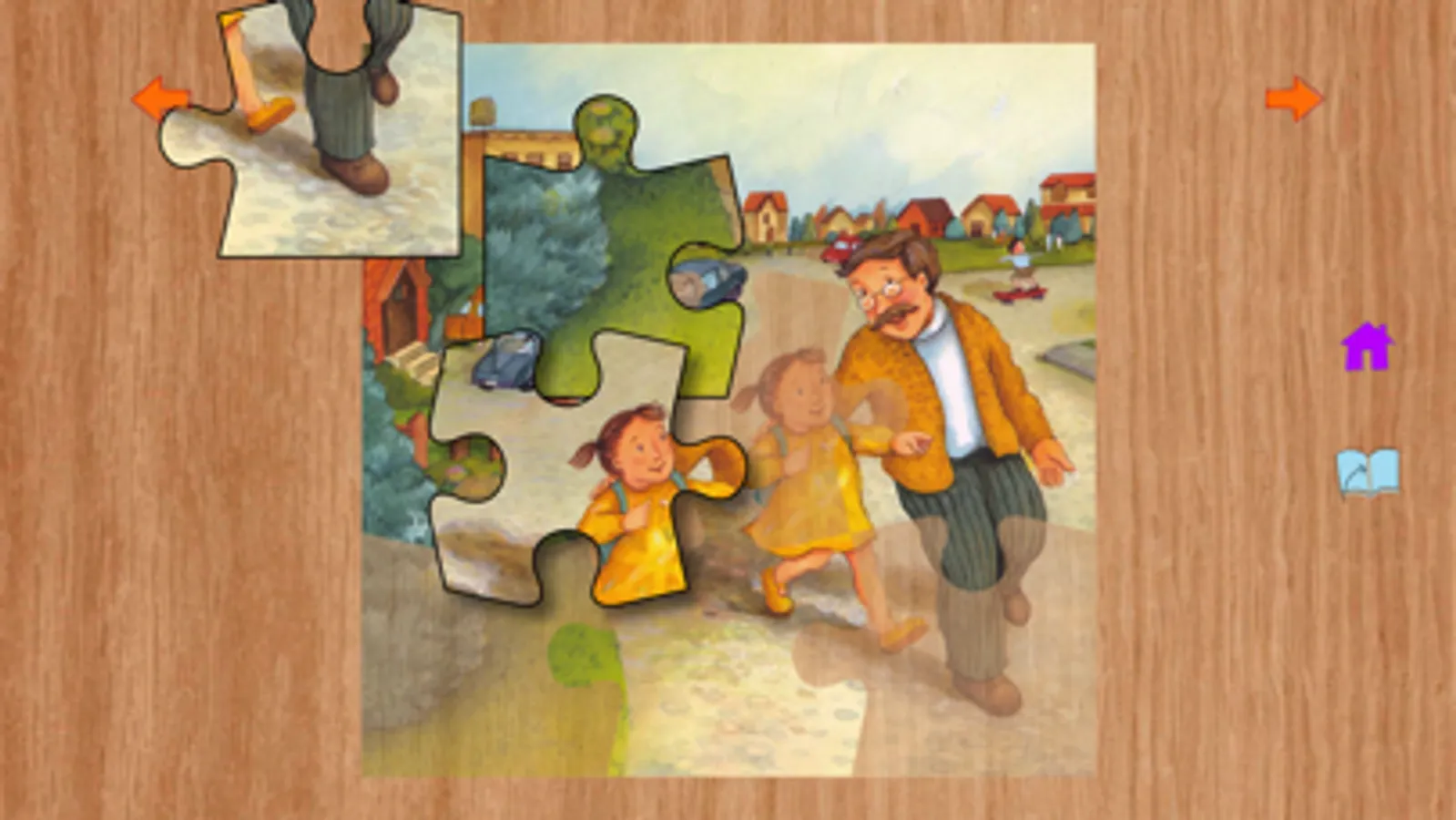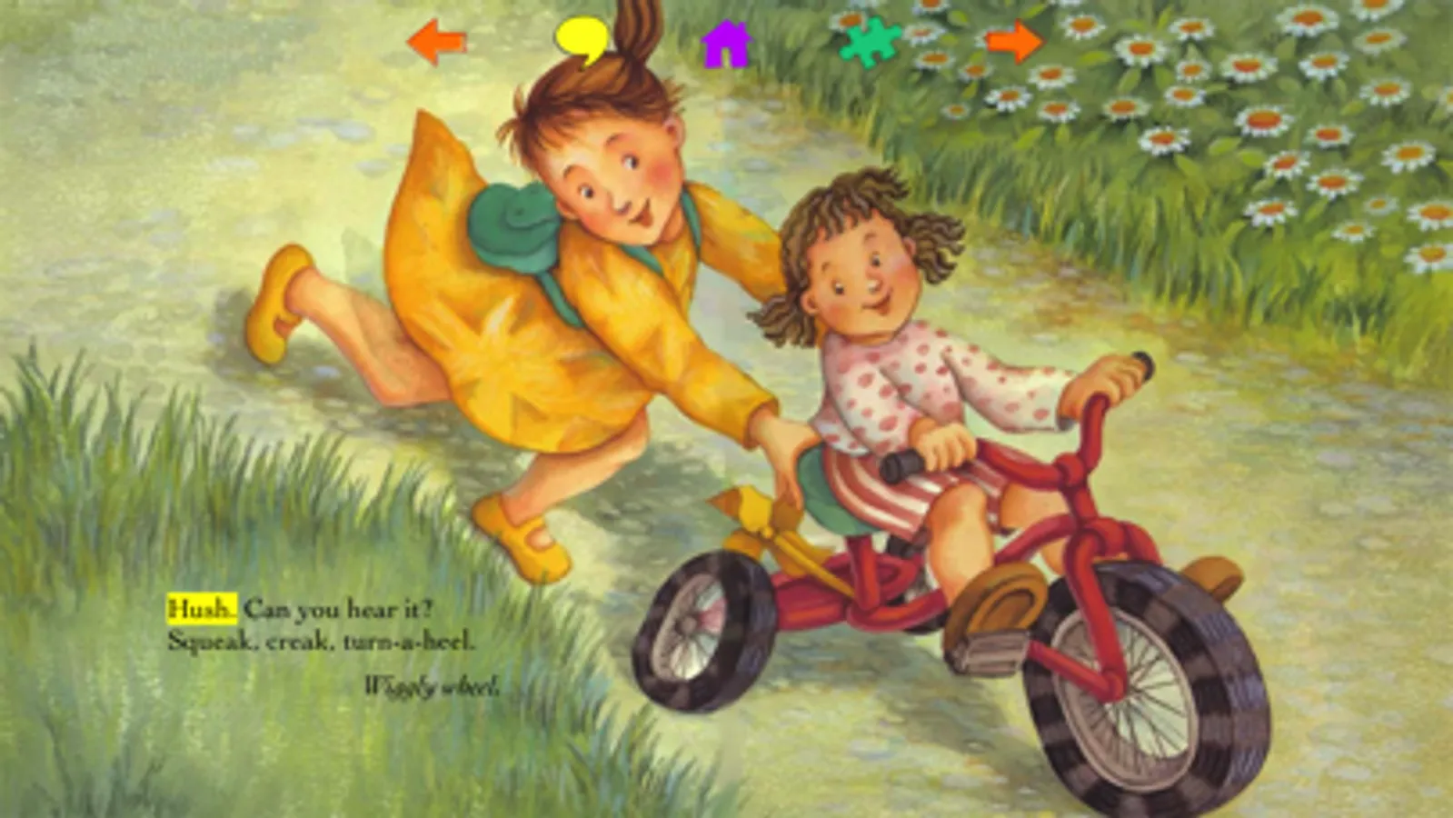 Children can choose to have the story read to them by the author (with words highlighted), or an adult or older child can read the text. Pages turn with a gentle swipe or by tapping orange arrows. A gentle song plays while the readers see and listen to the world around them. With a tap on the puzzle piece, children can do 9-piece jigsaw puzzles based on the current page.