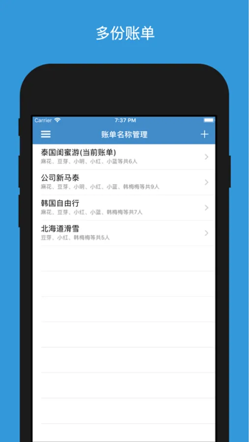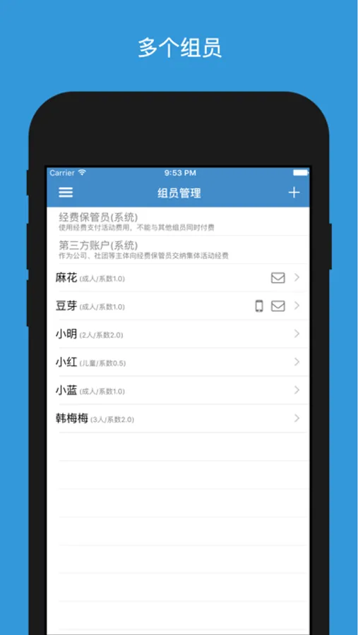 2.多组员:允许添加多个组员,并且每个账单允许同时记录多人付款和多人消费