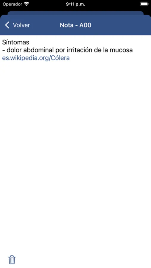- Añadir notas a los enfermedades pulsando en el botón que aparece al lado derecho de cada uno.