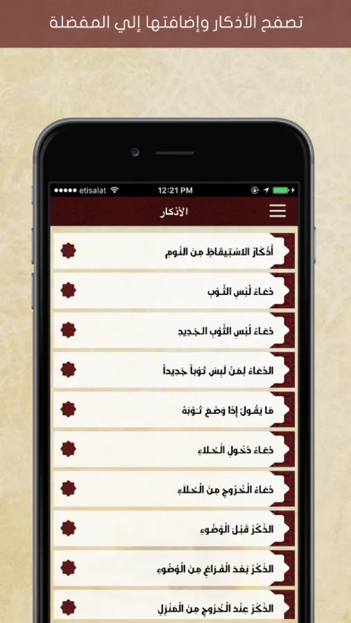 - أمكانية إضافة الأذكار التي تقرئها بكثرة إلي قائمة الأذكار المفضلة لسهولة الوصول إليها بعد ذلك