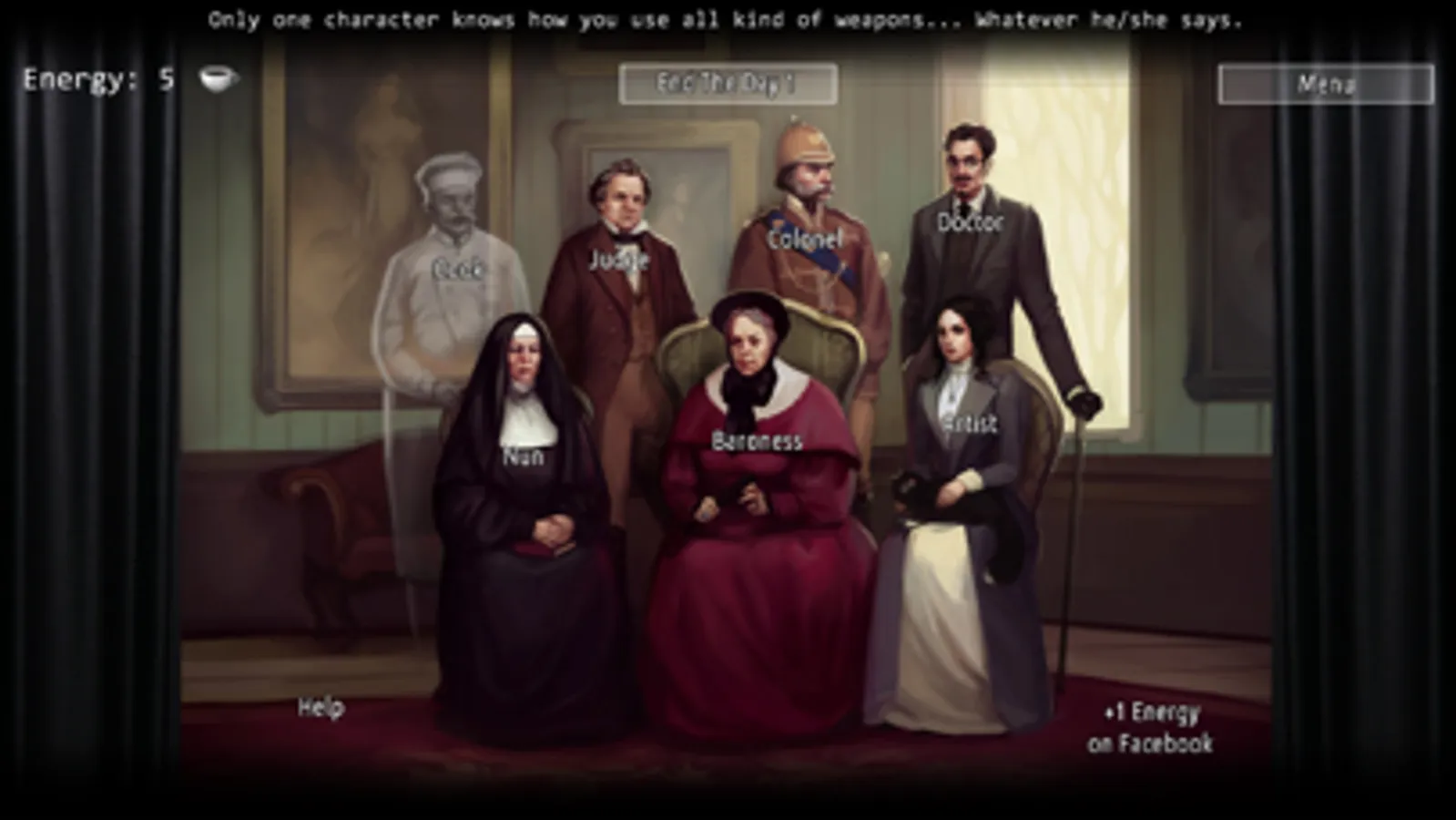 This original game is based on classical english detective rules. Everyday someone dies and you need to figure out who is the killer. Everybody has a common mystery story of the past. Everybody could have a motive to do this. And you have only seven days to stop the murderer.