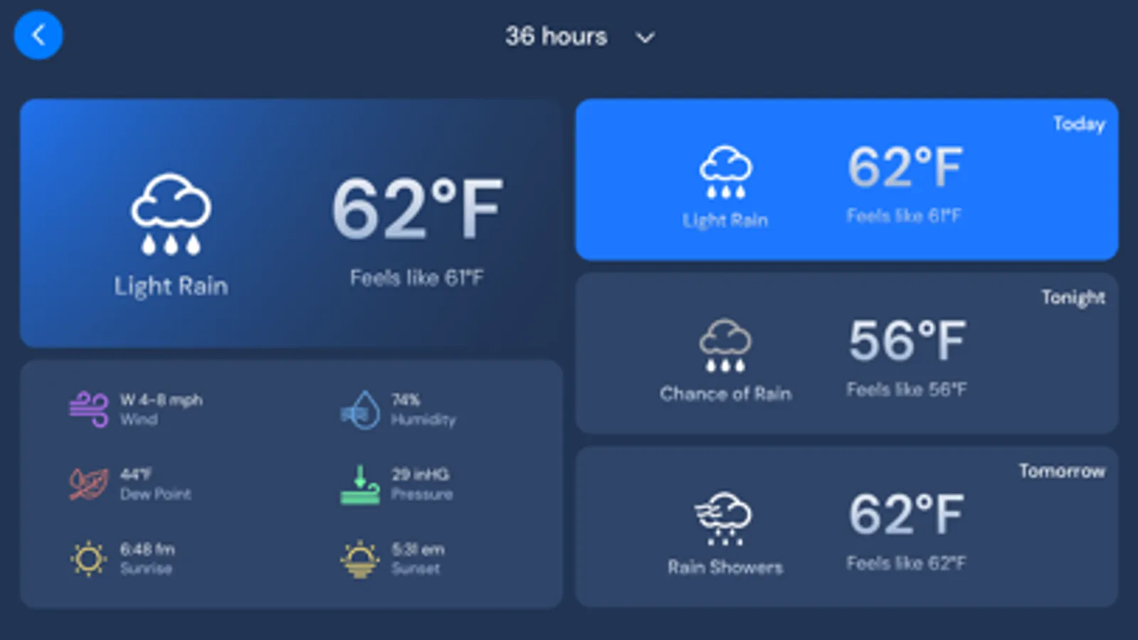 • Really on the go? Get instant access to your current conditions, temperature and extended outlooks.