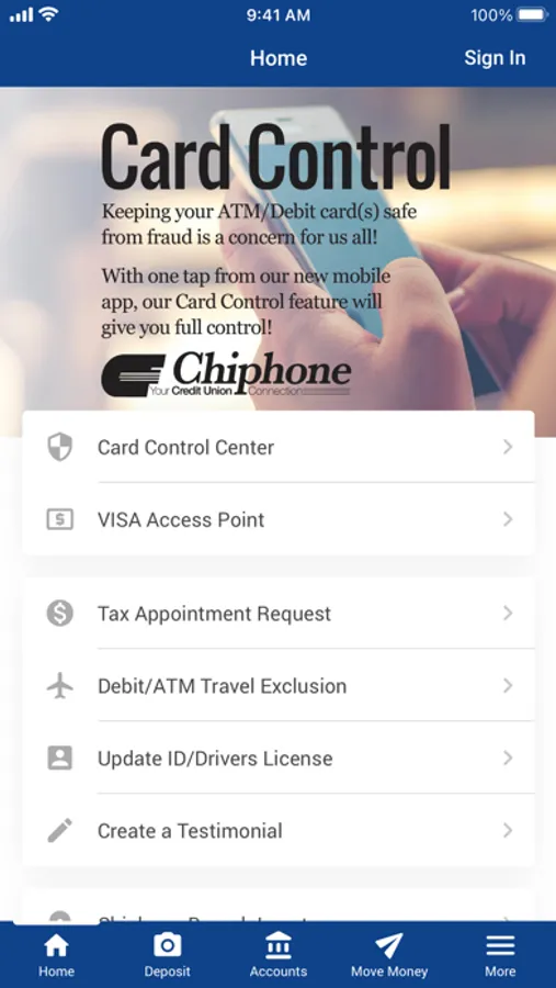Chiphone Federal Credit Union Mobile provides members convenient access to our website, mobile check deposit, mobile banking, branch and contact information.