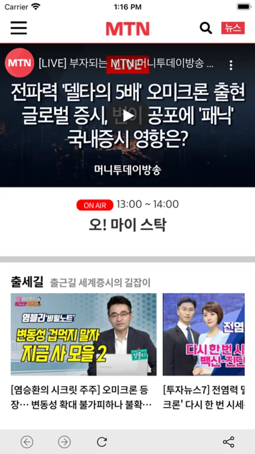 머니투데이방송 MTN의 24시간 라이브 방송과 고품격 경제/투자 뉴스, 주요 이슈 동영상을 스마트폰에서 만나보세요.