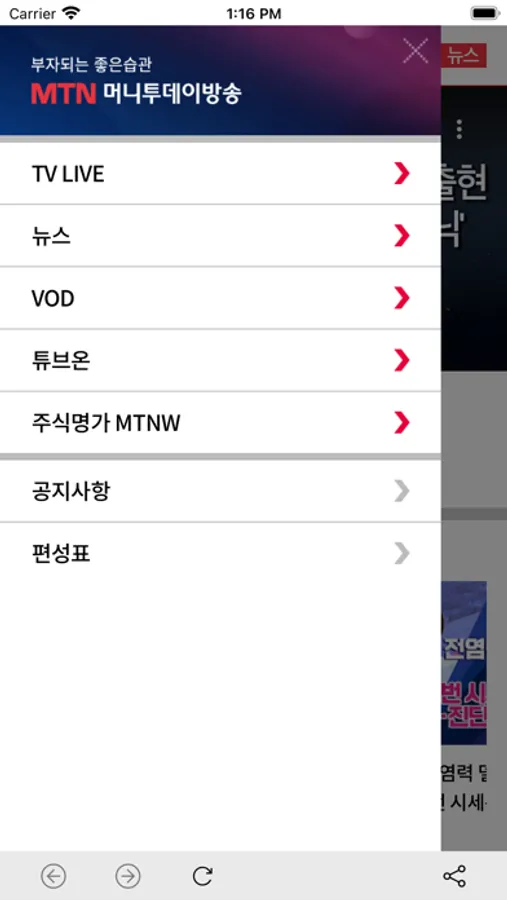 - VOD : 머니투데이방송의 모든 다시보기 동영상을 프로그램 및 이슈별로 고화질시청가능