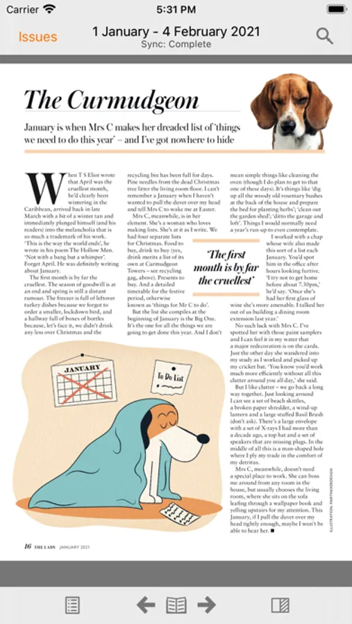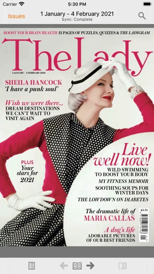• Sync back issues to your device for offline reading (requires wi-fi).