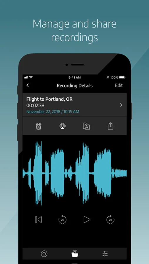 • Store your recording library on your iPhone or iPad, and access them with the iOS Files app or iTunes on a Mac or PC.