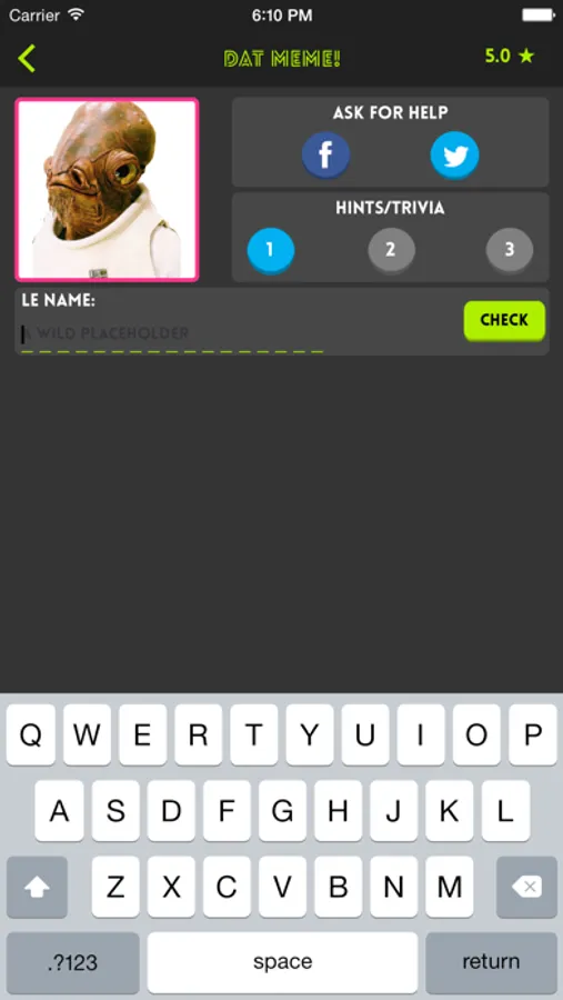 * GameCenter integration! See how you rank in the meme knowledge leaderboard.