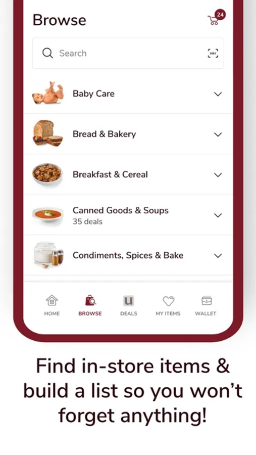 Use the app in store to find items by aisle locations, then scan to check prices and deals.