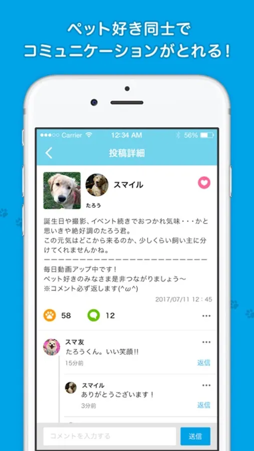 ・投稿されたペットの話題について“いいね”や“コメント”で交流ができます。