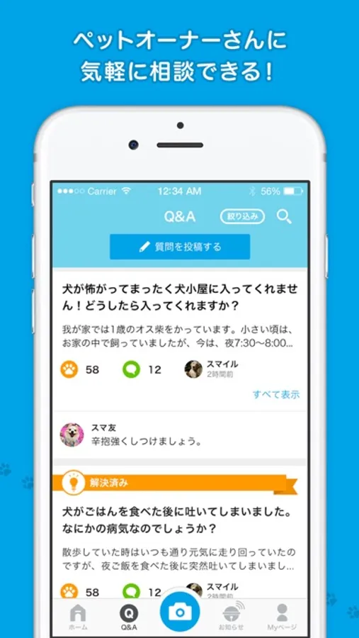 ・ペットに関するささいな疑問があるときや、情報交換をしたいときに便利なのがQ&A機能。