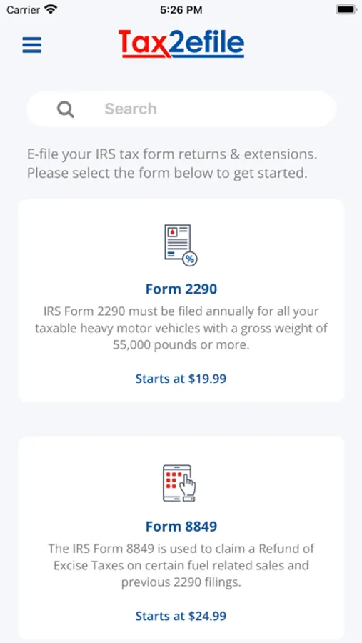the Efiling actual Website to the mobile iOS users. The Tax2efile