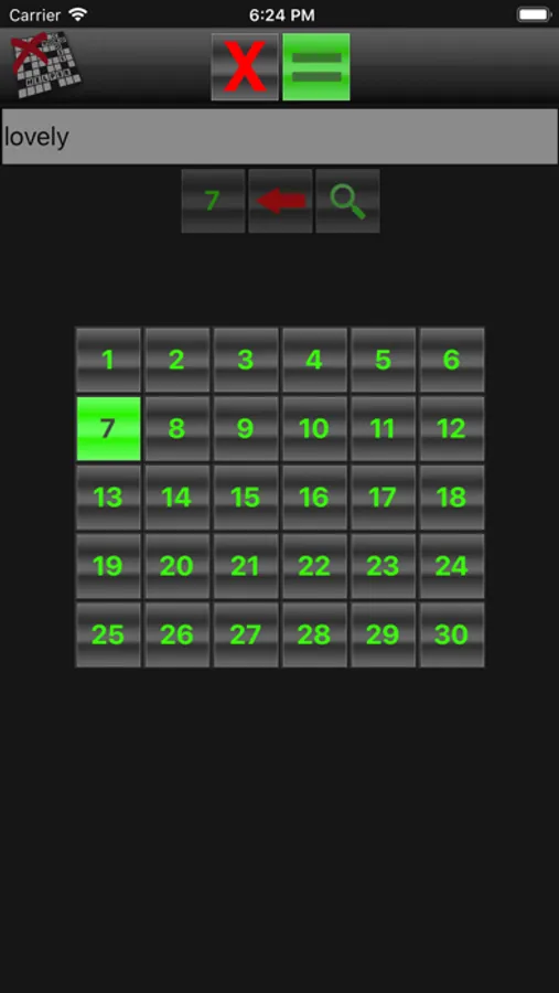 Press the search button (the magnifying glass) and EngCross will quickly find all words that matches your mask.