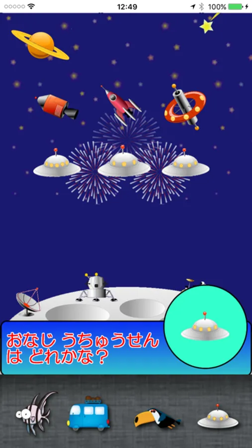 「ココタッチ -おなじものさがし-」は、海中、南極、ジャングル、宇宙、地下世界など合計8つの画面に、こどもが大好きな動物や乗り物などのかわいいイラストが、指でタッチするだけで動き出す楽しい 知育アプリです。