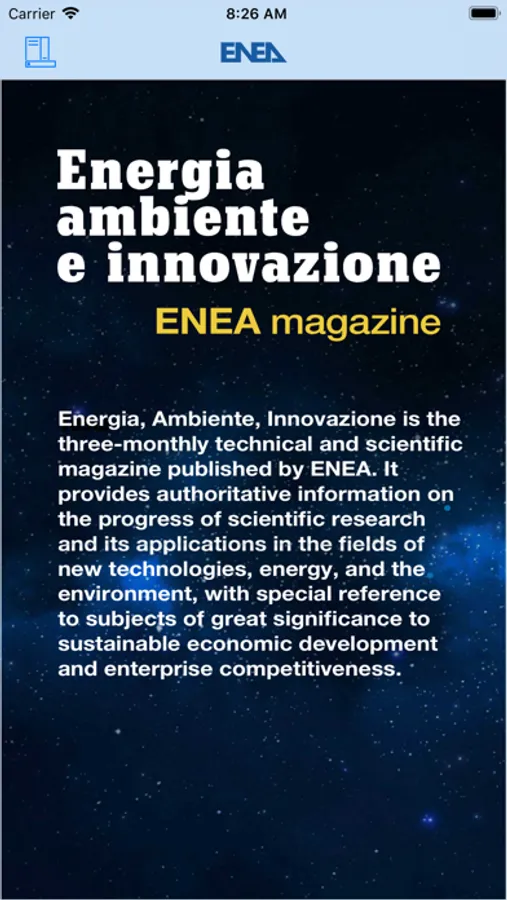 Energia, Ambiente, Innovazione is the four-monthly technical and scientific magazine published by ENEA. It provides authoritative information on the progress of scientific research and its applications in the fields of new technologies, energy, and the environment, with special reference to subjects of great significance to sustainable economic development and enterprise competitiveness.