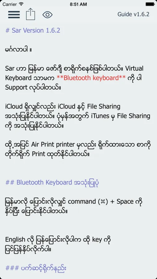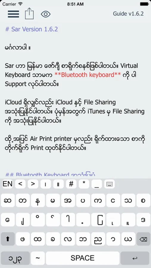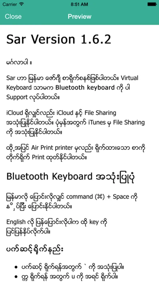 *** Sar App don't support Zawgyi Keyboard For iOS 8. Support only in App ***