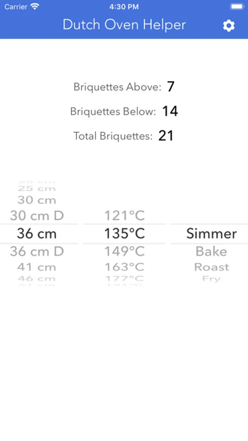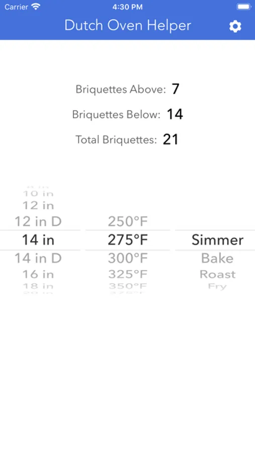 Simply choose a temperature, dutch oven size, and cooking method and the Dutch Oven Helper instantly calculates how many briquettes to put above and below your dutch oven!
